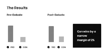 图片说明:辩论会现场,左边二人为正方的白邦瑞、麦克马斯特,右边为反方的马凯硕、王辉耀;辩论前后的投票情况,最终反方获胜。