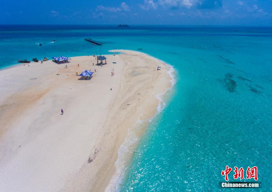 5月21日,搭乘“长乐公主”邮轮前往西沙旅游的游客,登上无人居住的西沙全富岛游览。全富岛位于中国西沙群岛永乐群岛,面积约0.02平方公里,全岛都被细软的细沙覆盖,水清沙白,在太阳的照射下化身美丽的“银滩”。骆云飞 摄