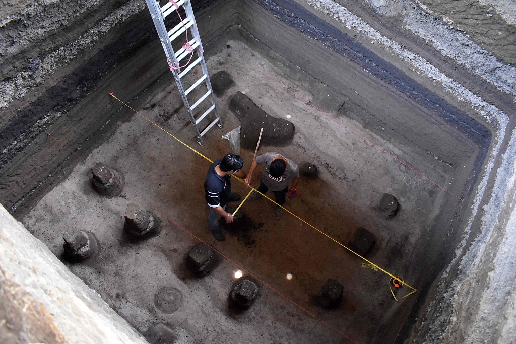 当地时间2019年5月23日,萨尔瓦多圣胡安奥皮科,考古学家在被称为“美洲庞贝”的玛雅小镇Joya de Ceren考古遗址进行发掘。这座小镇在大约1400年前因火山喷发被掩埋。