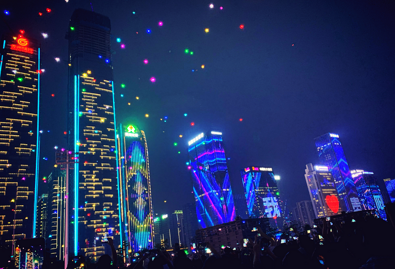 月中芭蕾、破茧成蝶、我爱贵阳……“526”无人机编队表演在贵州数博会场馆上空震撼上演,通过无人机舞步展示多彩贵州、爽爽的贵阳、数博盛会、追梦未来等主题。(图/文 李连环)