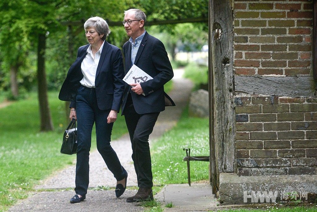 当地时间2019年5月26日,英国梅登黑德,英国首相特雷莎·梅和丈夫当日到教堂做礼拜。(图:视觉中国)