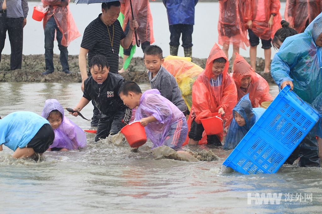 江苏淮安办插秧节 游客雨中插秧摸鱼感受农耕乐