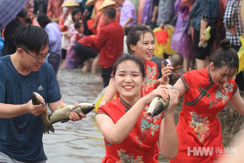 江苏淮安办插秧节 游客雨中插秧摸鱼感受农耕乐