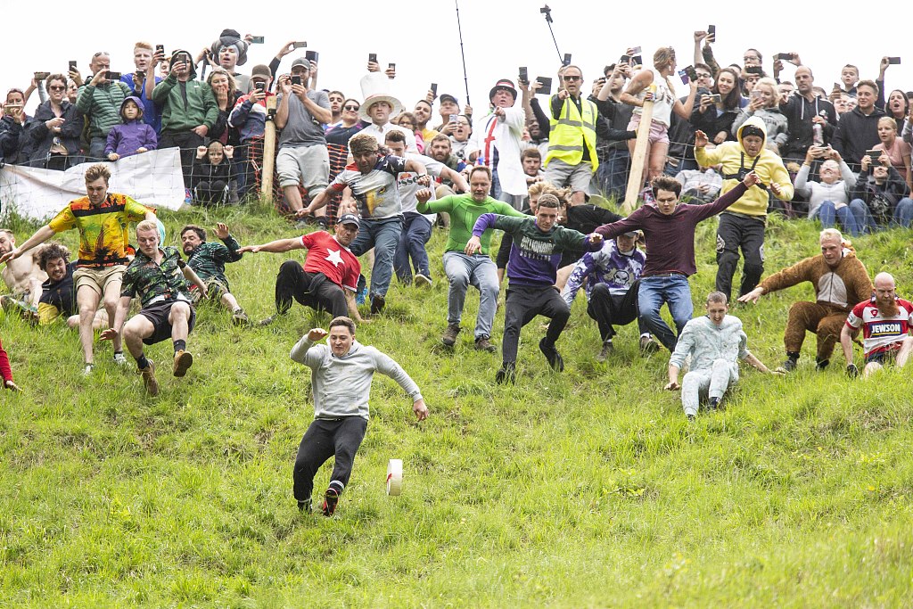 当地时间2019年5月27日,英国格洛斯特,当地举办一年一度的滚奶酪大赛。