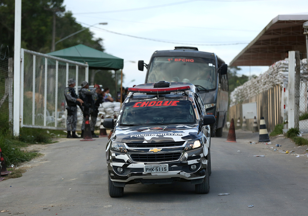 当地时间2019年5月27日,巴西马瑙斯市,防暴警察离开监狱。巴西北部亚马孙州一所监狱26日发生囚犯冲突,造成15人死亡。据报道,目前情况已经得到控制,没有囚犯越狱等情况发生。2017年,也是这一所监狱发生暴动,导致56人死亡。