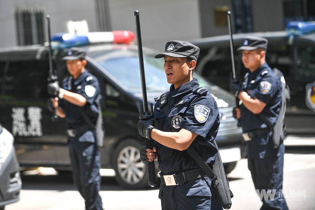 2019年5月27日,太原,当地巡警背负新式防暴棍在街头执勤巡逻。(图:视觉中国)