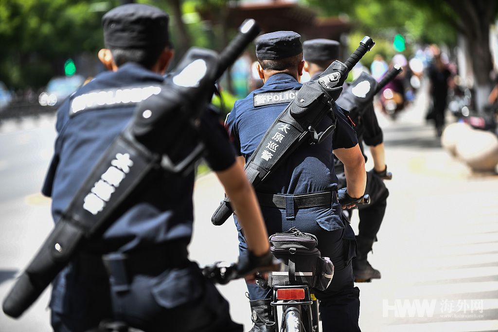 2019年5月27日,太原,当地巡警背负新式防暴棍在街头执勤巡逻。(图:视觉中国)