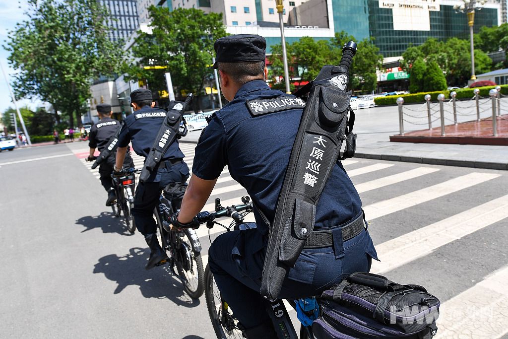 2019年5月27日,太原,当地巡警背负新式防暴棍在街头执勤巡逻。(图:视觉中国)
