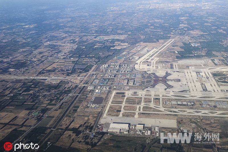 2019年5月27日,从飞机上俯瞰大兴国际机场,鸟瞰犹如外星基地。(图:东方IC)