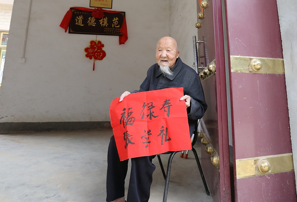 河南平顶山117岁健康长寿老人张学礼 爱读书写字