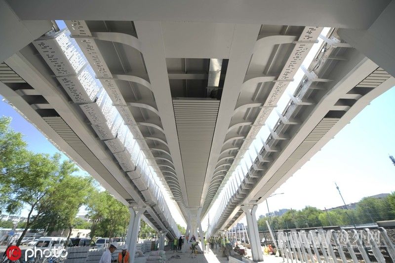 净宽6米的路面共分3个车道,其中一个突出特点是设计了潮汐车道,用彩色铺装进行区分。其中红色的是潮汐车道,绿色的是正常行驶车道。