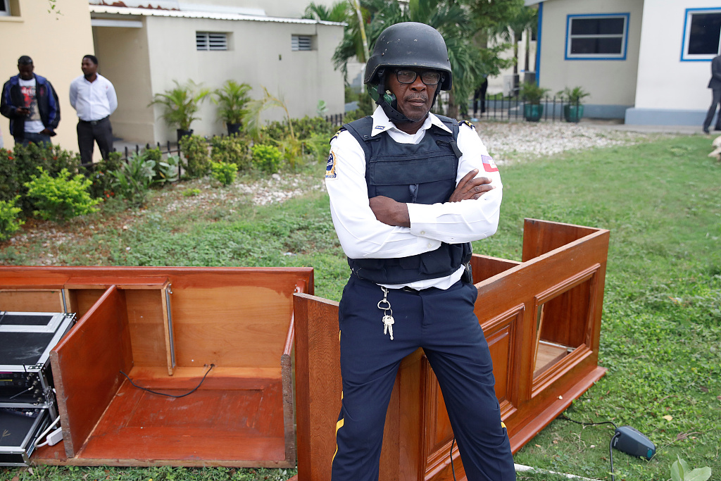 当地时间2019年5月30日,海地太子港,参议院会议大厅遭反对派参议员打砸,地板上散落着被损坏的桌椅。
