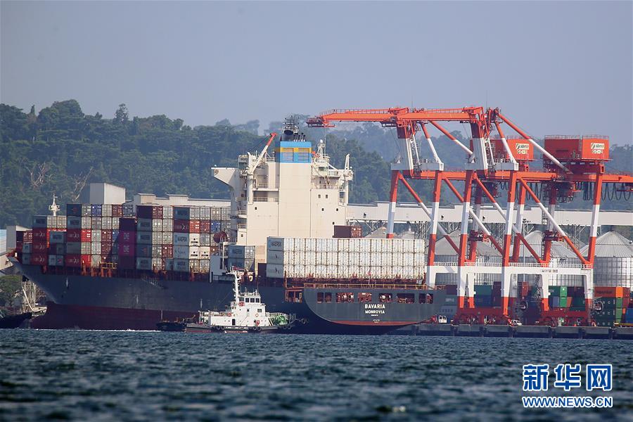 5月30日,一艘加拿大政府派遣的货船停泊在菲律宾北部苏比克湾自由港,准备将6年前堆放在菲律宾的69箱垃圾运离。新华社发(乌马利 摄)