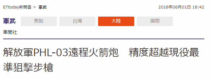 台媒一年前刊登的一篇军事分析文章还形容PHL-03型300毫米远程火箭炮“多发齐射的壮观景象另人瞋目结舌”“展示出高精确的打击与巨大威力”,更援引军事作家科罗廖夫的话表示称“其射击精度已远超过现役最准的狙击步枪。”