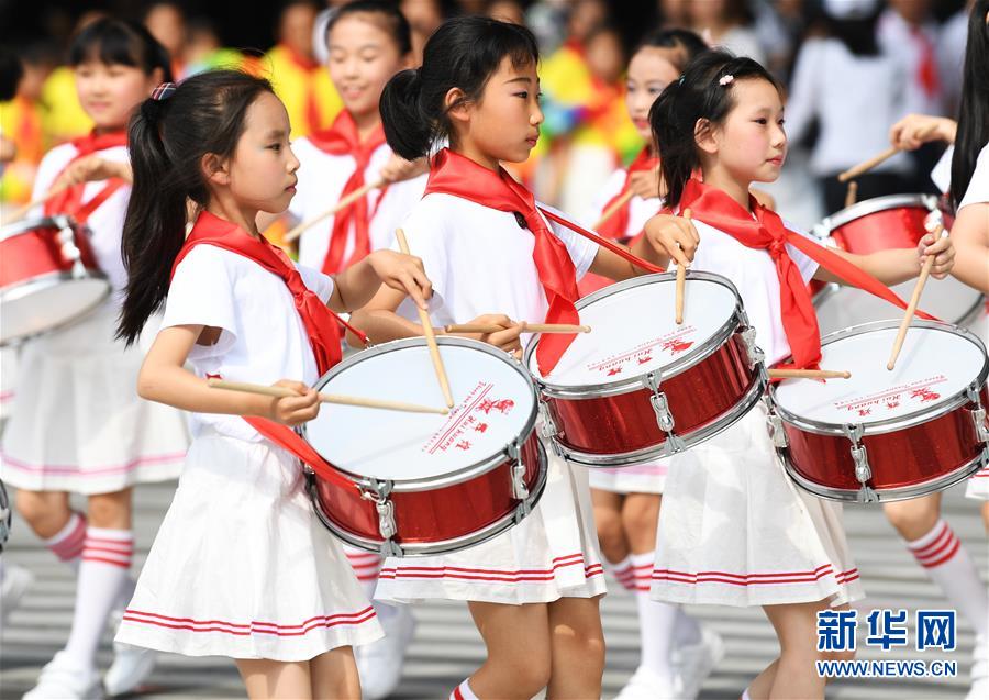 6月1日,重庆市南岸区举办“祖国祖国我爱你”主题快闪活动,300多名小朋友和近百名文化志愿者用歌声和舞蹈表达对祖国的祝福。新华社记者 王全超 摄