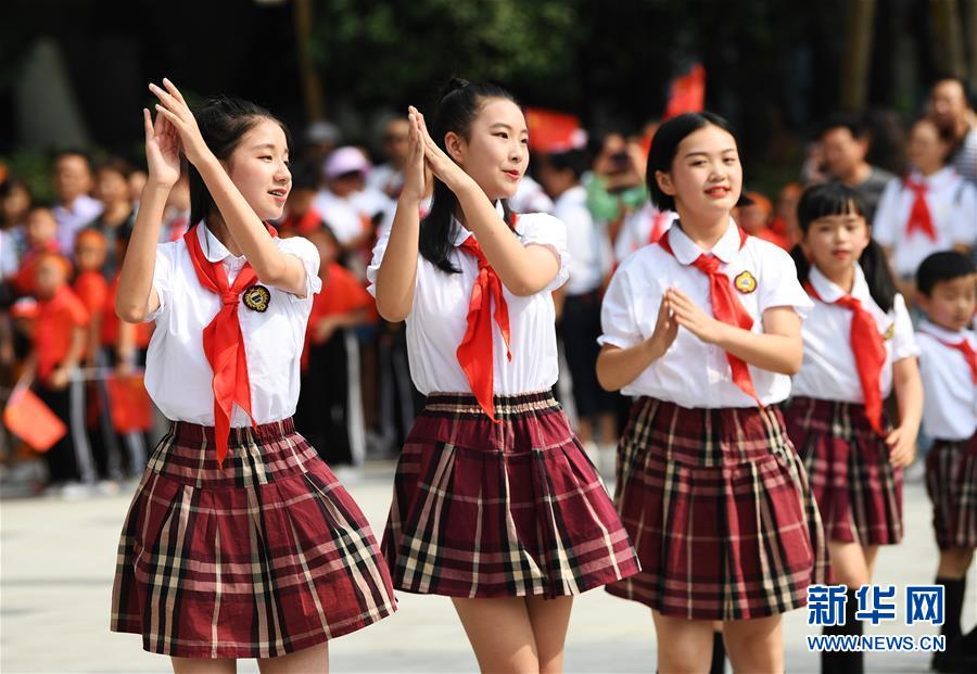 6月1日,重庆市南岸区举办“祖国祖国我爱你”主题快闪活动,300多名小朋友和近百名文化志愿者用歌声和舞蹈表达对祖国的祝福。新华社记者 王全超 摄