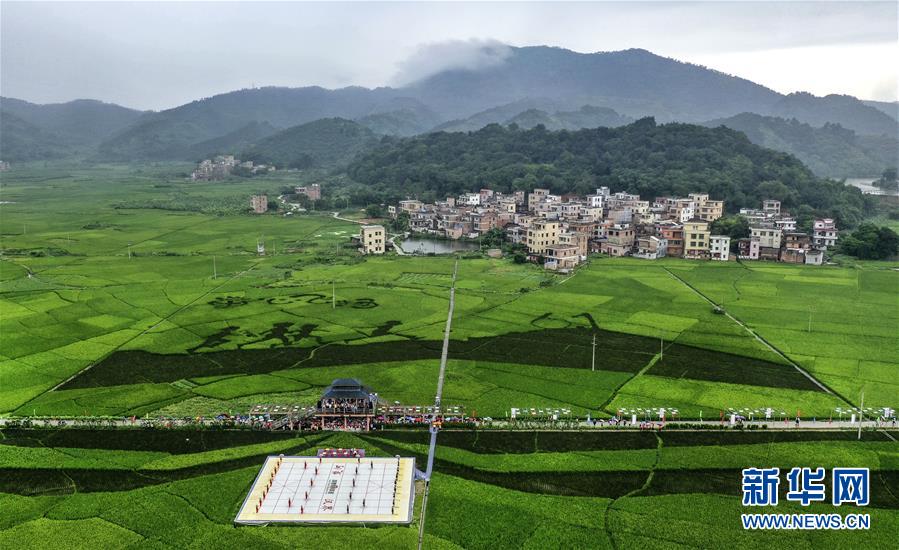 近日,在广东省肇庆市德庆县悦城镇罗洪村连片水稻田里,栩栩如生的稻田画和稻田中特设的“大地棋盘”,吸引了众多游人前来游览。