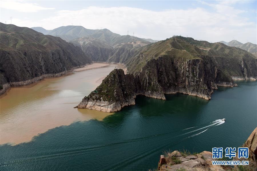 在甘肃省临夏回族自治州永靖县刘家峡水库,一艘快艇在洮河和黄河的汇合水域行驶。 新华社记者 马宁 摄 图片来源:新华网