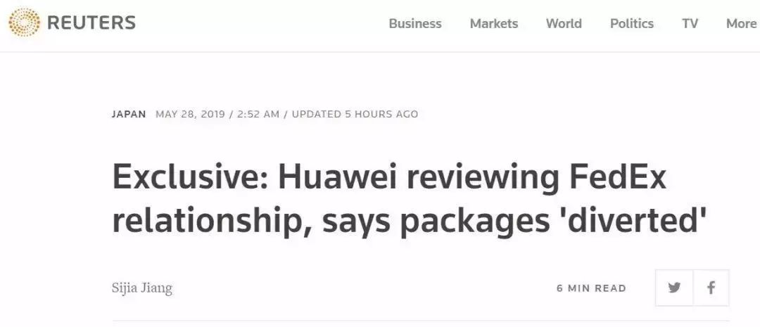 据路透社5月28日消息,华为透露,联邦快递将华为2个包裹私自转运至美国,并对另外2个包裹进行扣留,欲“如法炮制”。