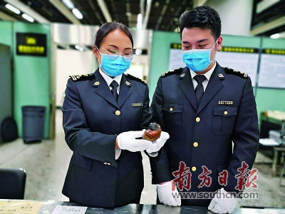 西九龙站海关查获的非洲大蜗牛,系我国首批16种外来入侵物种之一。