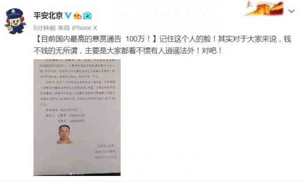 据@平安北京 今天(5日)发布通告:悬赏犯罪嫌疑人汤晓东100万元。