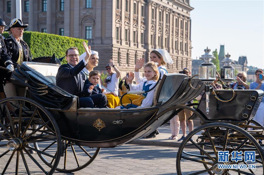 6月6日,在瑞典斯德哥尔摩,瑞典女王储维多利亚、丈夫丹尼尔王子等前往市中心的斯堪森公园,与民众共同庆祝瑞典国庆日。 6月6日是瑞典国庆日。 新华社发(魏学超摄)