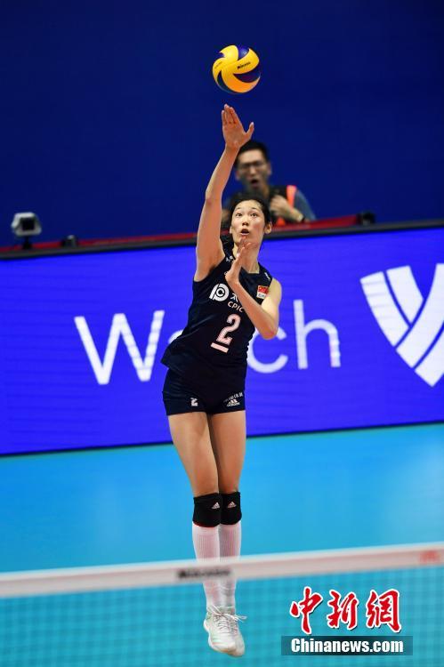 6月6日,香港排球总会主办的“FIVB世界女排联赛香港2019”于香港体育馆举行最后一天的赛事。中国队比赛开始初段打得并不顺利,在落后意大利两局的情况下,慢慢掌握比赛节奏,以3-2局数反胜意大利,艰难地取得胜利。3天赛事中,中国队以全胜的成绩完成香港站的赛事。中新社记者 李志华 摄
