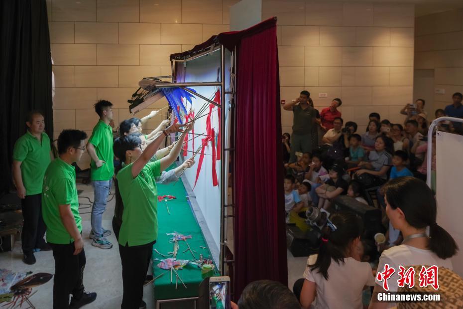 6月7日,正值端午佳节,北京天桥艺术中心内举行“酒旗戏鼓天桥市,多少游人不忆家”文化民俗活动,集合传统曲艺、复古市集、互动体验等形式,还原“京韵”“京味儿”。图为市民观看皮影戏表演。中新社记者 贾天勇 摄