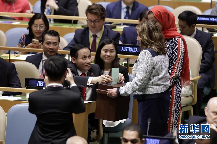 6月7日,在位于纽约的联合国总部,越南副外长黎怀忠在2020年和2021年安理会非常任理事国选举上投票。 新华社记者 李木子 摄
