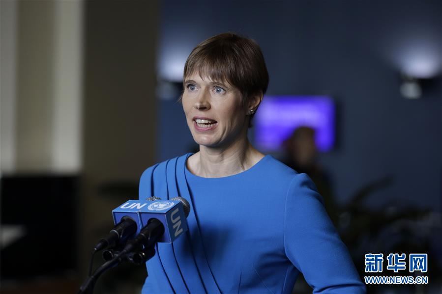 6月7日,在位于纽约的联合国总部,爱沙尼亚总统卡柳莱德在爱沙尼亚当选2020年和2021年安理会非常任理事国后会见媒体。新华社记者 李木子 摄