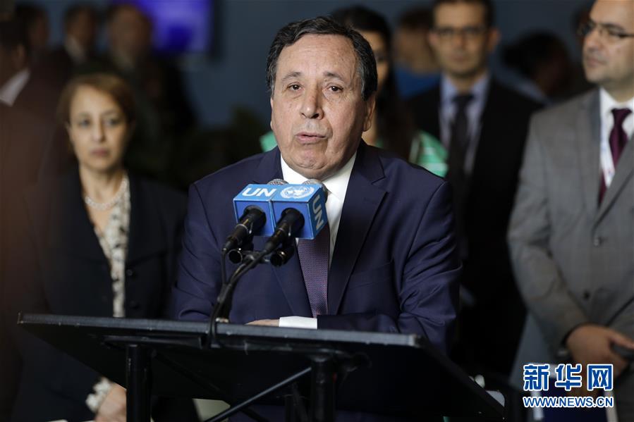 ​6月7日,在位于纽约的联合国总部,突尼斯外长杰希纳维在突尼斯当选2020年和2021年安理会非常任理事国后会见媒体。新华社记者 李木子 摄
