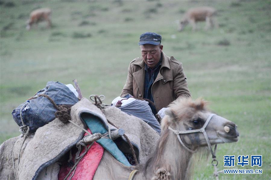 清晨,新疆阿勒泰地区福海县牧民收拾行李准备转场(6月6日摄)。新华社记者 丁磊 摄