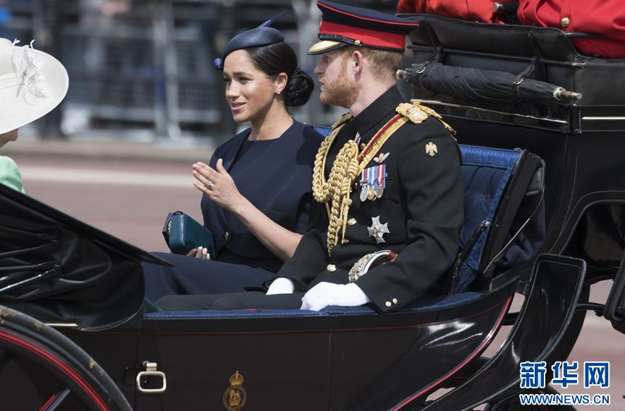 6月8日,在英国伦敦,英国哈里王子与妻子梅根乘马车离开白金汉宫。 当日,英国伦敦举行盛大庆典,庆祝英女王93岁官方生日。