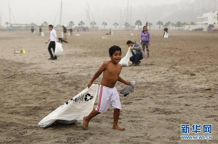 秘鲁志愿者清理海滩 庆祝世界海洋日