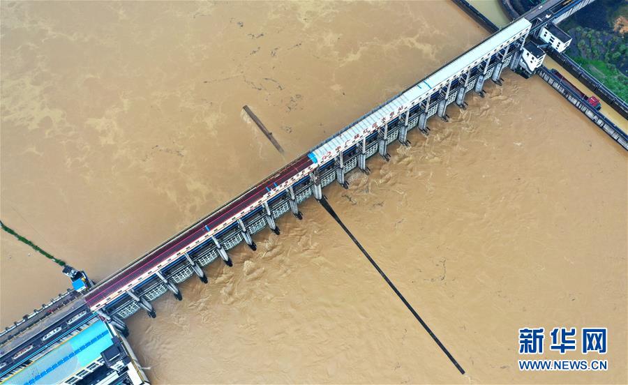 6月10日,受上游暴雨影响,广西柳江柳州水文站出现洪峰水位79.59米(警戒水位82.5米),部分沿江道路被洪水淹没。 新华社发(黎寒池 摄)