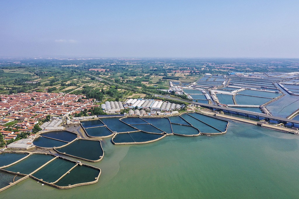 山东青岛:航拍陈家贡湾美景 养殖池成“蓝绿宝石”