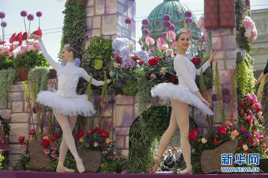 圣彼得堡举办鲜花游行庆祝“俄罗斯日”
