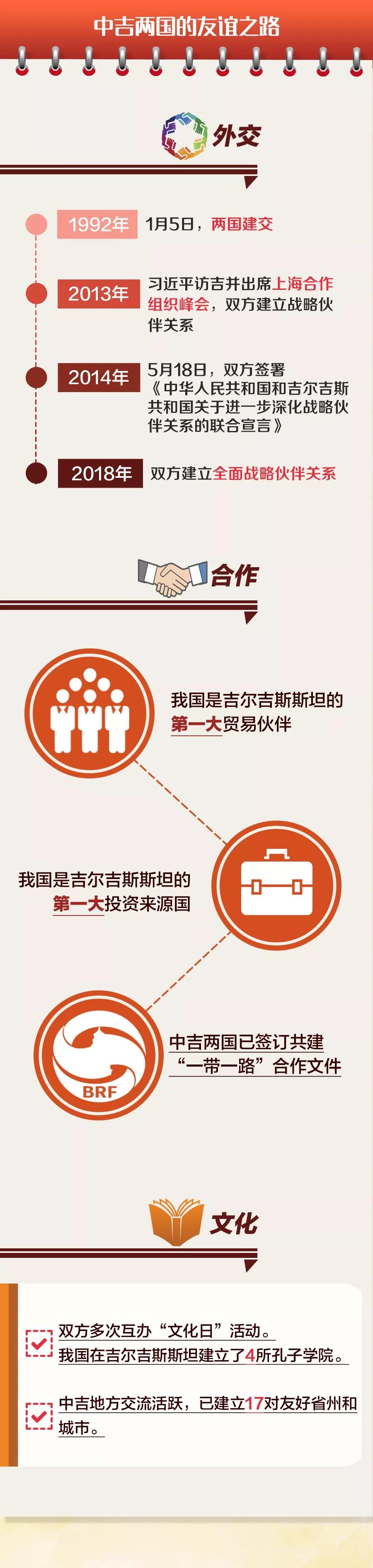 访吉前夕,习近平在吉尔吉斯斯坦媒体发表署名文章。他表示:中吉两国人民比邻而居,传统友好源远流长。两国风雨同舟、守望相助,是名副其实的好邻居、好朋友、好伙伴、好兄弟。