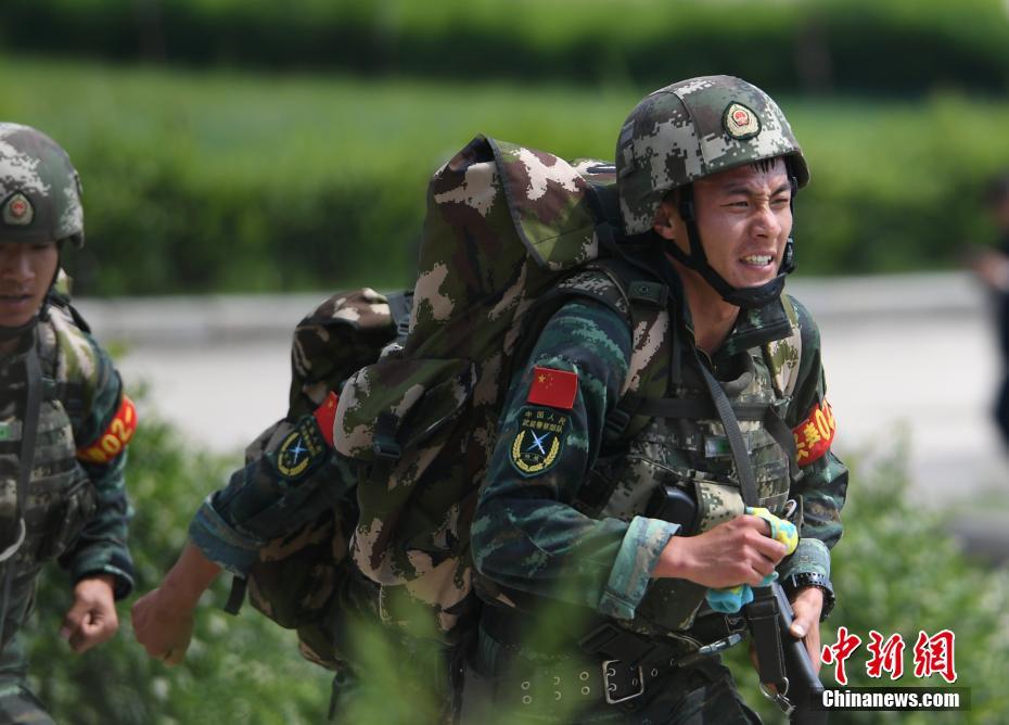 6月11日,武警吉林总队特战官兵在吉林市某山林地开展为期7天6夜的“魔鬼周”极限训练。此次“魔鬼周”共设置40多个训练课目,每天训练十几个小时,人均负重30公斤,从体能、技能、智能及心理等方面,对特战队员进行全方位“魔鬼”考验。 (中新社记者 张瑶 摄)