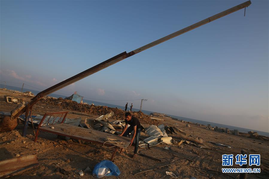 6月14日,在加沙地带南部的汗尤尼斯,人们查看空袭现场。 以色列军方13日凌晨出动战机,对加沙地带实施轰炸,以回应加沙地带武装人员稍早前向以色列发射自制火箭弹。 新华社发(哈立德·奥马尔摄)