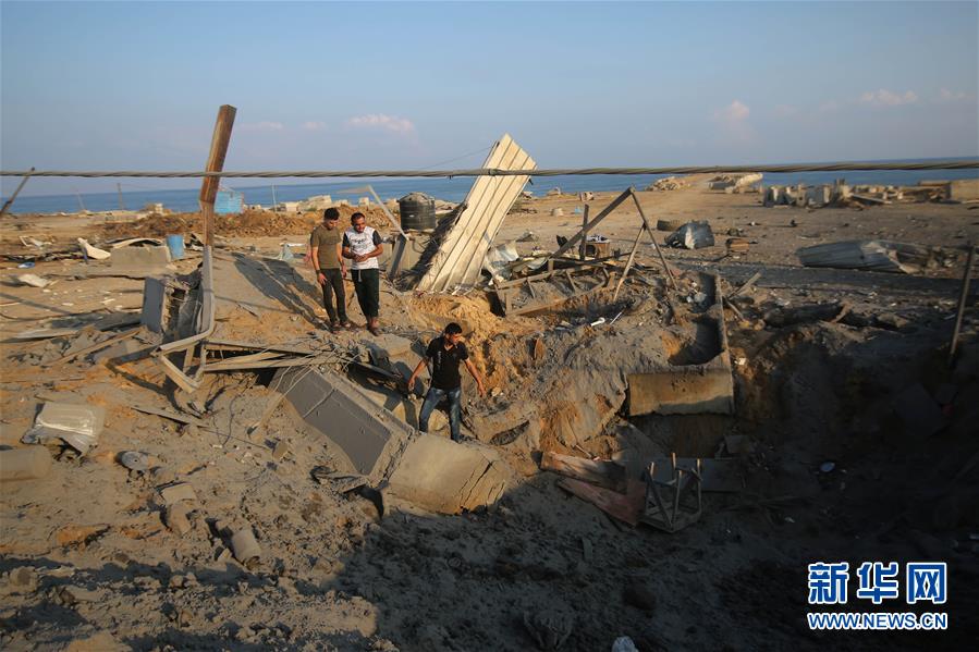 6月14日,在加沙地带南部的汗尤尼斯,人们查看空袭现场。 以色列军方13日凌晨出动战机,对加沙地带实施轰炸,以回应加沙地带武装人员稍早前向以色列发射自制火箭弹。 新华社发(哈立德·奥马尔摄)
