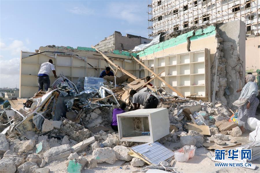6月15日,在索马里首都摩加迪沙,人们从汽车炸弹袭击损坏的房屋中清理物品。 索马里警方15日说,摩加迪沙当天遭到两起汽车炸弹袭击,造成包括袭击者在内的10人死亡、26人受伤。 新华社发(哈桑摄)