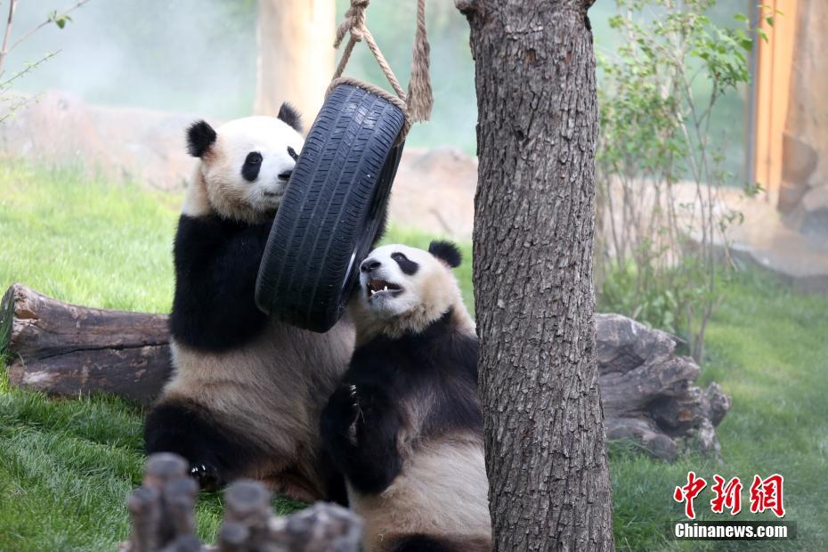 6月16日,青藏高原首个大熊猫馆在青海西宁开馆,4只由成都大熊猫繁育研究基地而来的大熊猫开启为期3年的科普教育之旅。位于青藏高原野生动物园内的西宁熊猫馆总占地面积9000平方米,建筑面积4617平方米,是目前中国国内最大的单体熊猫馆,为大熊猫配有各自独立的室内外活动空间和休息区。图为大熊猫在馆内玩耍。中新社记者 罗云鹏 摄