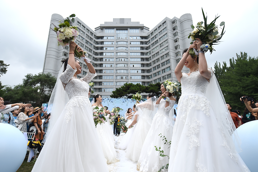 大学校园上演浪漫婚礼 15对毕业生校园内喜结连理