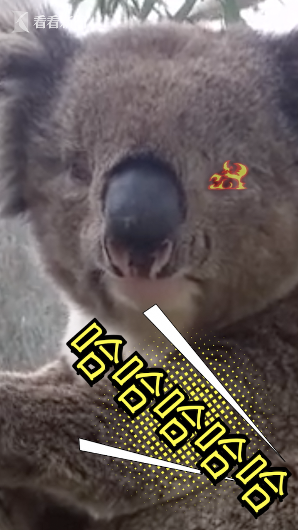 可爱的小手在空中挥舞著同时还眯起了眼睛。因为不知道考拉会咳嗽,拍摄的网友忍不住笑了起来,考拉立马转头盯着男子看,仿佛在质问他“你瞅啥?”