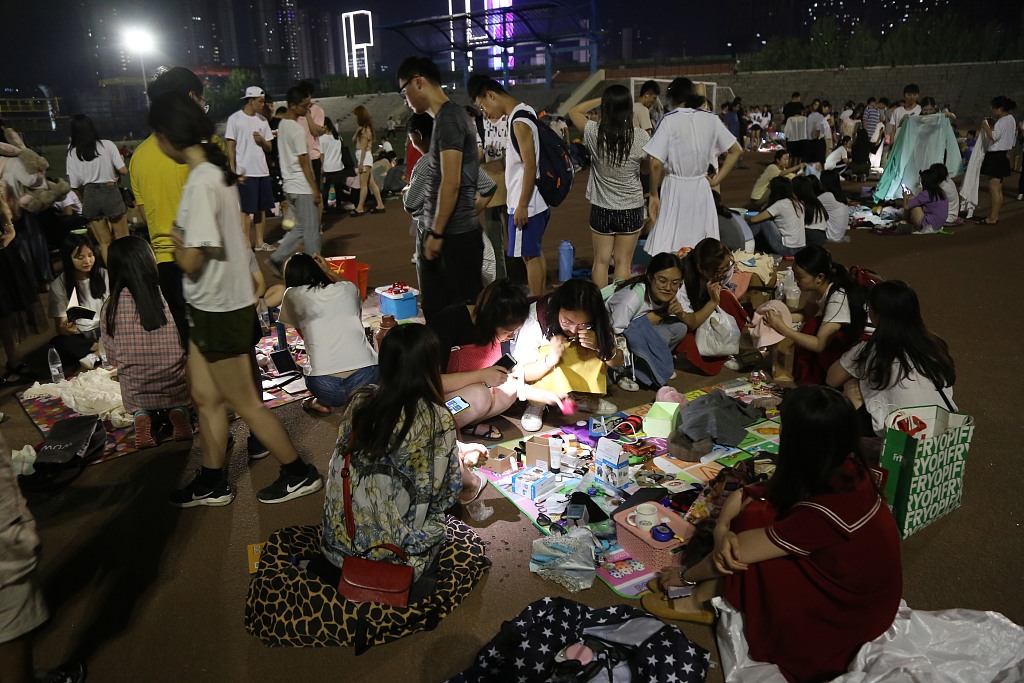 2019年6月17日,河南郑州,西大学城一所高校的操场上,即将离校的毕业生办起“跳蚤市场”,向学弟学妹低价售卖图书资料、衣服鞋子、文具玩具等二手用品,吸引众多学生“赶集”,十分热闹。