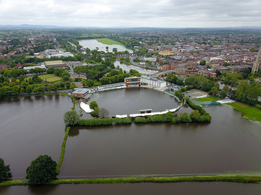 当地时间2019年6月17日,英国伍斯特郡,暴雨引发洪灾,多处被淹。