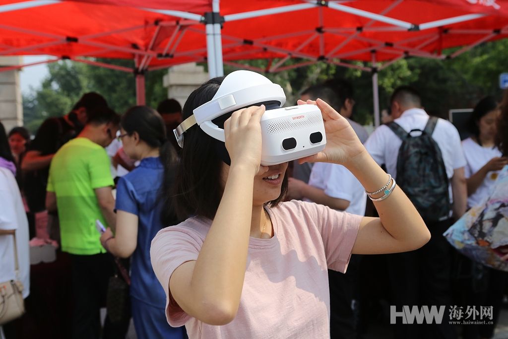 全国首个5G综合交通枢纽站及首条商用5G公交线路在青岛启用。图为乘客体验5G。