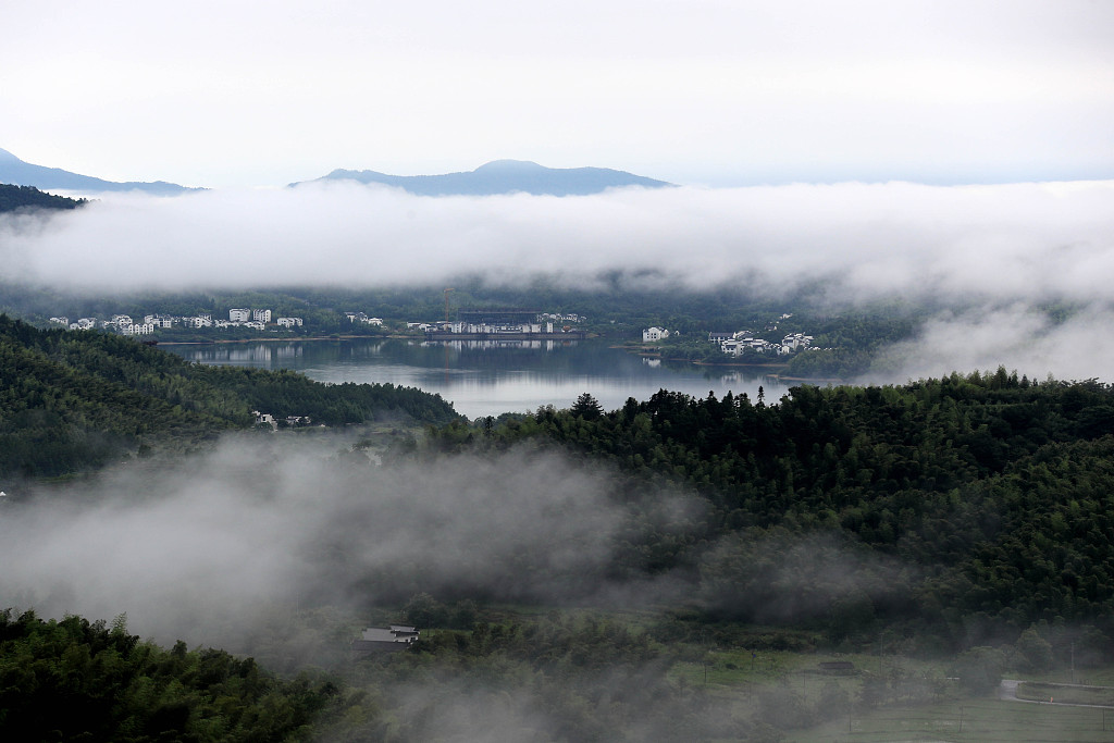 2019年6月20日早晨,安徽黄山,暴雨过后,黟县塔川出现平流雾景观,徽派古民居在平流雾中若隐若现,恍如仙境。