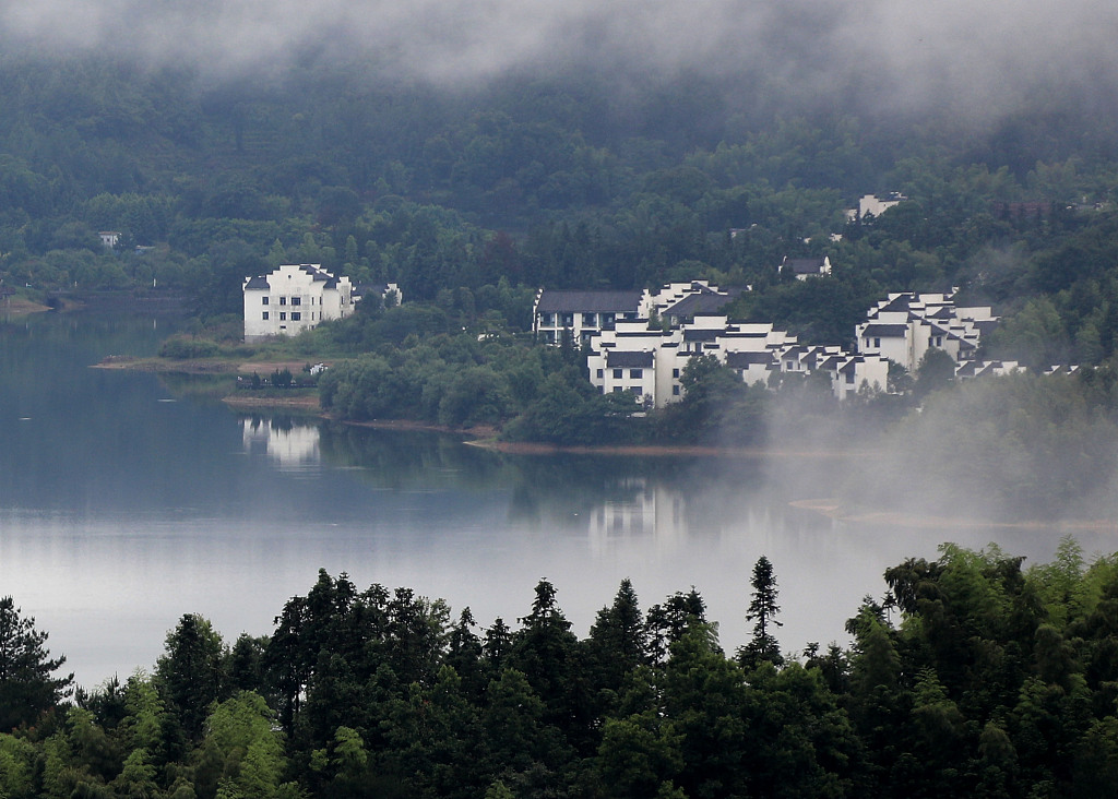 2019年6月20日早晨,安徽黄山,暴雨过后,黟县塔川出现平流雾景观,徽派古民居在平流雾中若隐若现,恍如仙境。